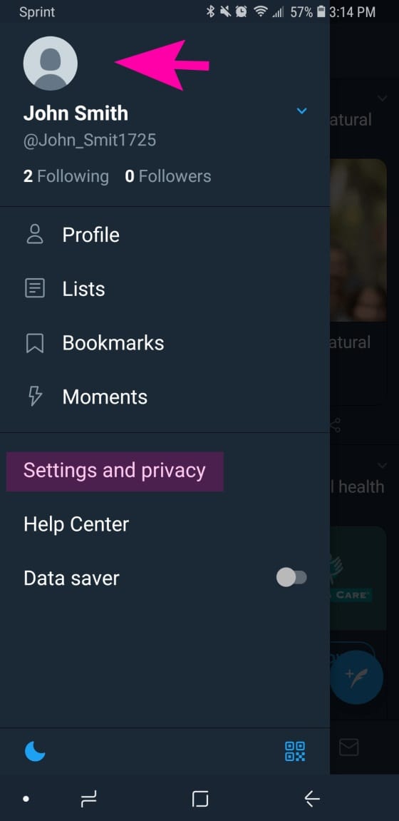 - اضغط على صورة ملفك الشخصي في الزاوية اليسرى العليا ثم حدد “الإعدادات والخصوصية”.