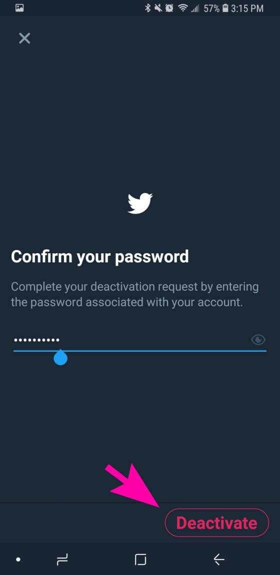 - أدخل كلمة المرور الخاصة بك وانقر فوق الزر “إلغاء تنشيط الحساب” لتأكيد طلب إلغاء التنشيط الخاص بك.