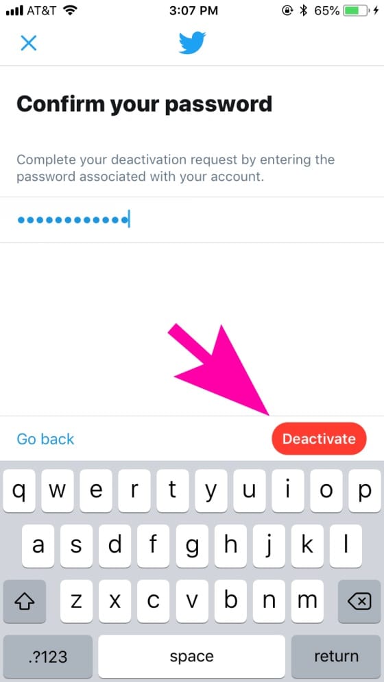 - اكتب كلمة المرور الخاصة بك واضغط على زر “إلغاء تنشيط الحساب” لتأكيد الطلب.