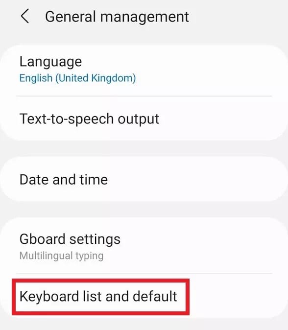 - بعد ذلك، تحتاج إلى العثور على إعدادات لوحة المفاتيح وهذا يختلف حسب الهاتف، على الهواتف التي تعمل بإصدار نظيف من Android، فأنت تريد الانتقال إلى النظام > اللغات والإدخال، ولكن على Samsung Galaxy S10e الذي نستخدمه، المسار هو النظام > الإدارة العامة > قائمة لوحة المفاتيح.