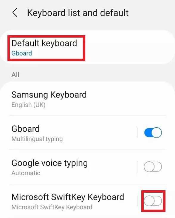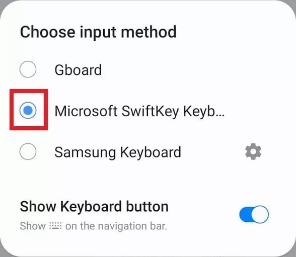 - قم بالتبديل إلى لوحة المفاتيح الجديدة على هواتف Samsung، وما عليك سوى النقر على مربع “لوحة المفاتيح الافتراضية” أعلى الصفحة وتعيينها تلقائياً.
