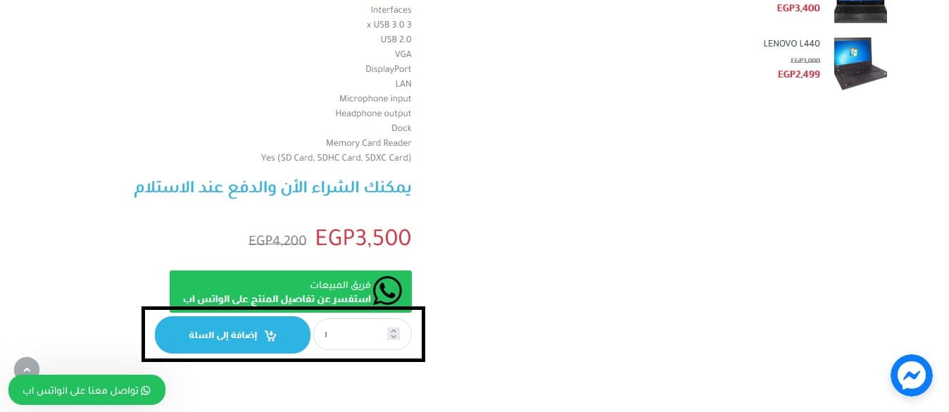 - إذا نال اللابتوب استحسانك يمكنك الضغط على خيار “أضف إلى السلة” لإتمام عملية الشراء: